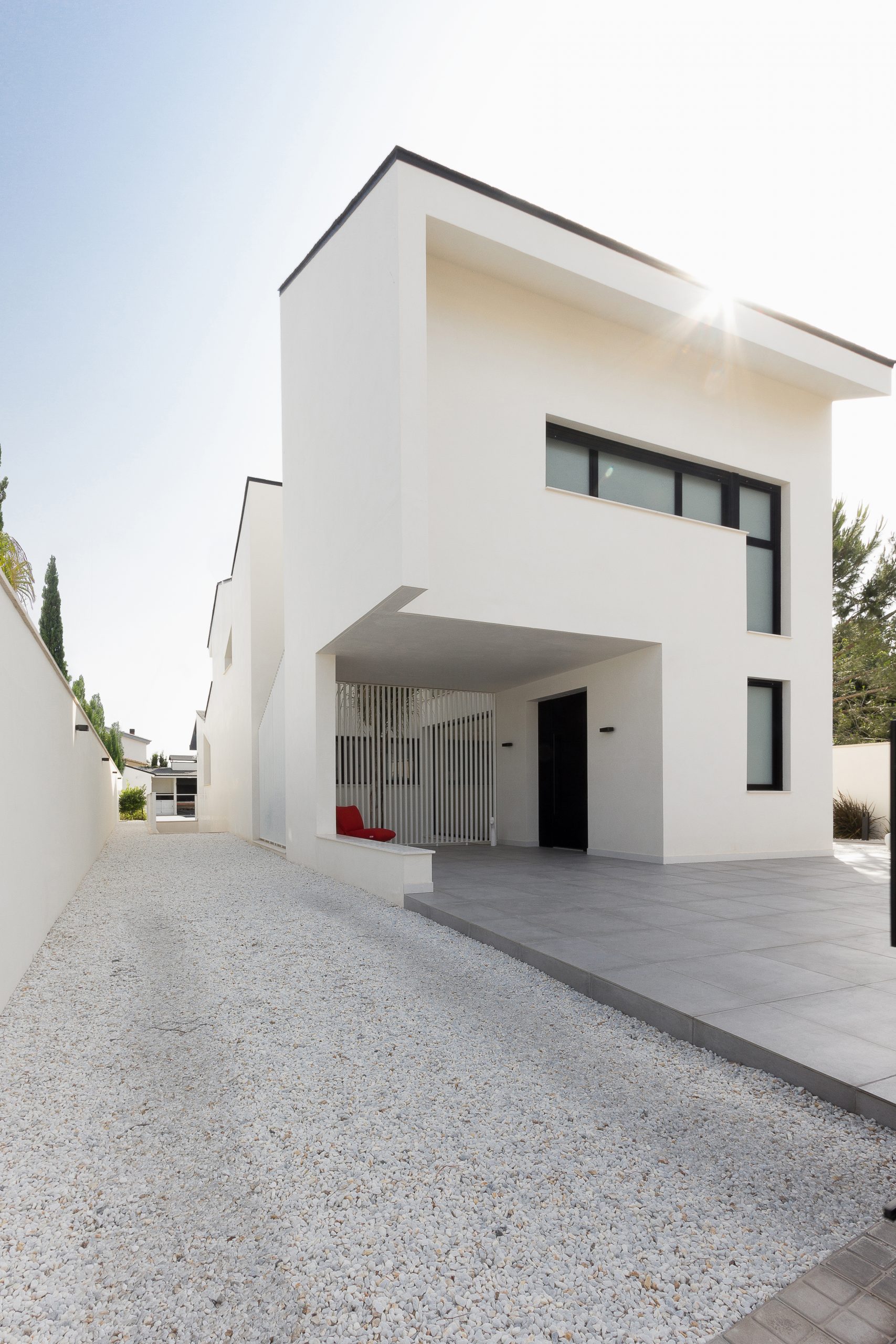 Una vivienda vanguardista distribuida en cuatro plantas con un particular juego volumétrico debido a sus cubiertas inclinadas y su patio interior. En un espacio predominantemente alargado que impide el crecimiento de la vivienda hacia los lados, su diseño plantea un eje central desde el que nacen todos los elementos de forma lineal.